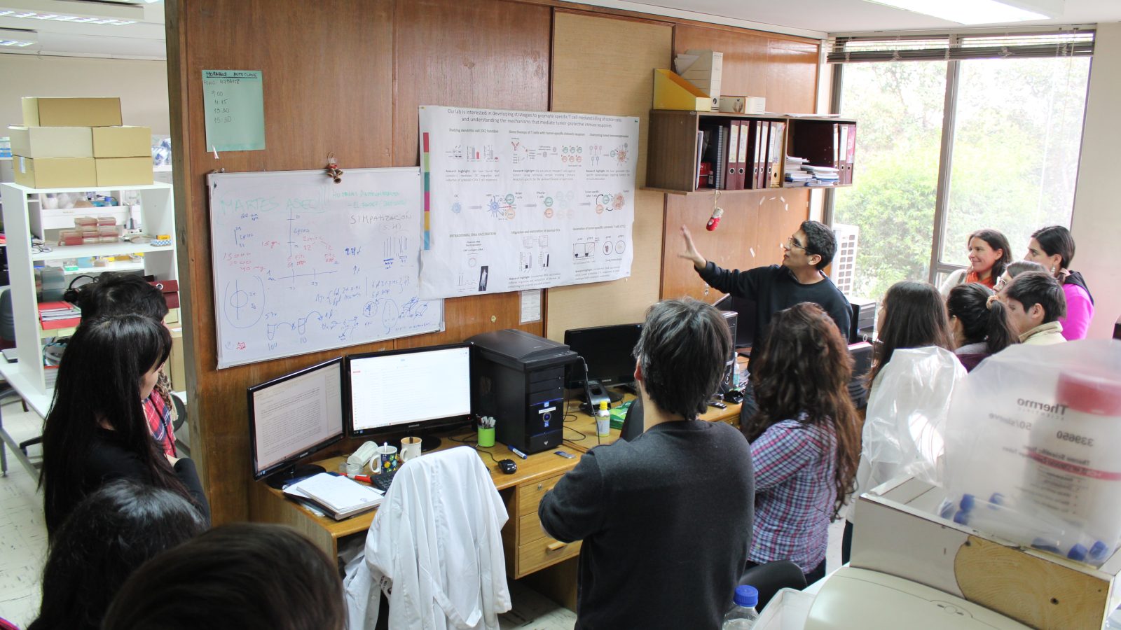 28/06/2016On Thursday June 23 we were visited by a group of fifth-year biochemistry students and two professors from Universidad de La Frontera (UFRO) located at the southern city of Temuco. The objective of this visit was to present them different aspects of Fundación Ciencia & Vida for possible collaborations, research opportunities, internships or theses topics to be carried out in our laboratories.