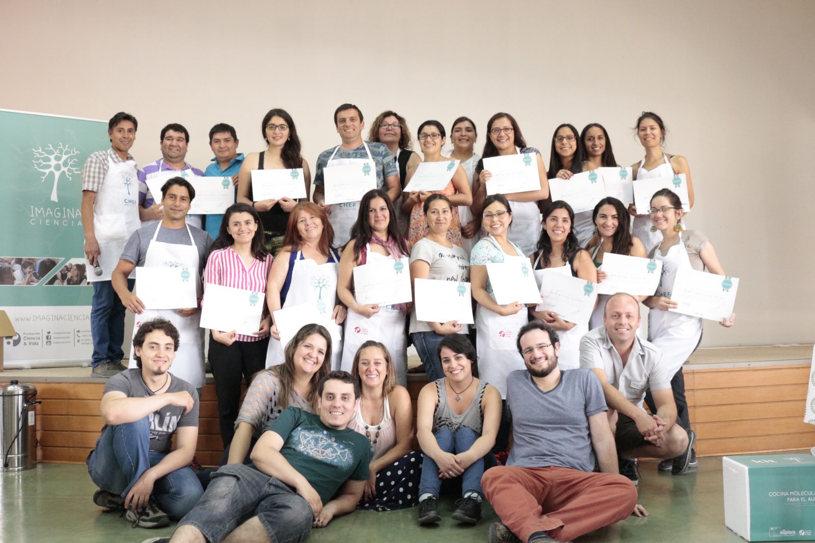 This project, funded by the Explora CONICYT Project for the Popularization of Science and Technology 2015-2016, consisted of a theoretical and practical workshop aimed at science and gastronomy teachers, with the focus on teaching them basic physical, chemical and biochemical principles using the techniques of molecular cuisine. Three workshops for 20 teachers each were performed using low-cost and simple materials so that the experience may be easily reproduced in the classroom. Instructors from Fundación and from the Millennium Institute of Oceanography and from CICAT (Centro Interactivo de Ciencias, Artes y Tecnología) from the southern city of Concepción were trained and given the necessary materials to conduct these workshops.