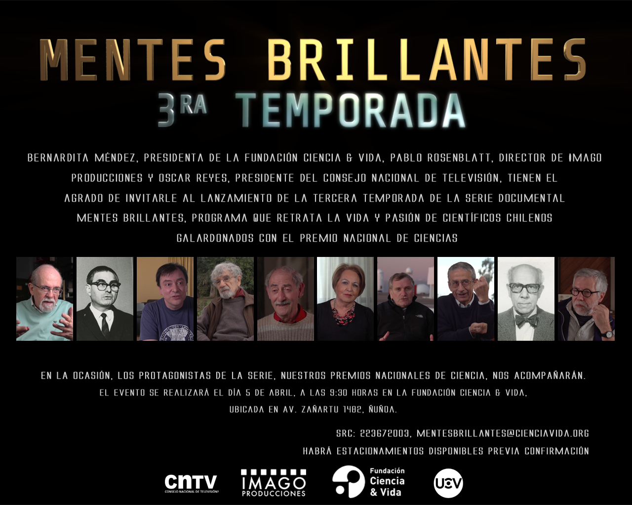 At an event in our Science and Business Park, Fundación will launch on April 5th, a new season of the documentary series “Mentes Brillantes”. This popular series portraits the life and work of Chilean National Science Award winners, who have left an indelible mark on national and international science.