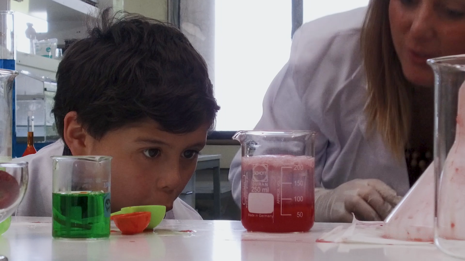 Pancho, one of the protagonists of the series, visits Fundación Ciencia & Vida, where the biochemist Nicole Halcartegaray answers his questions in the laboratory with an experiment in which they extract the DNA from a strawberry.