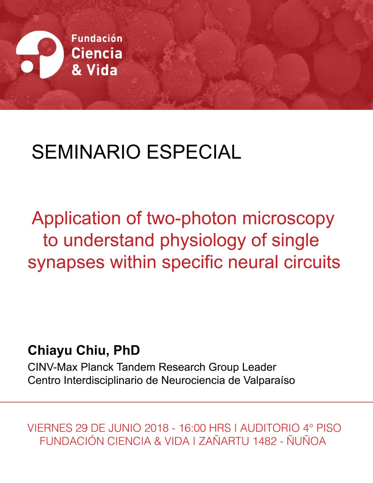 Location: Auditorium 4th Floor Fundación Ciencia & Vida Avenida Zañartu 1482, Ñuñoa, Santiago