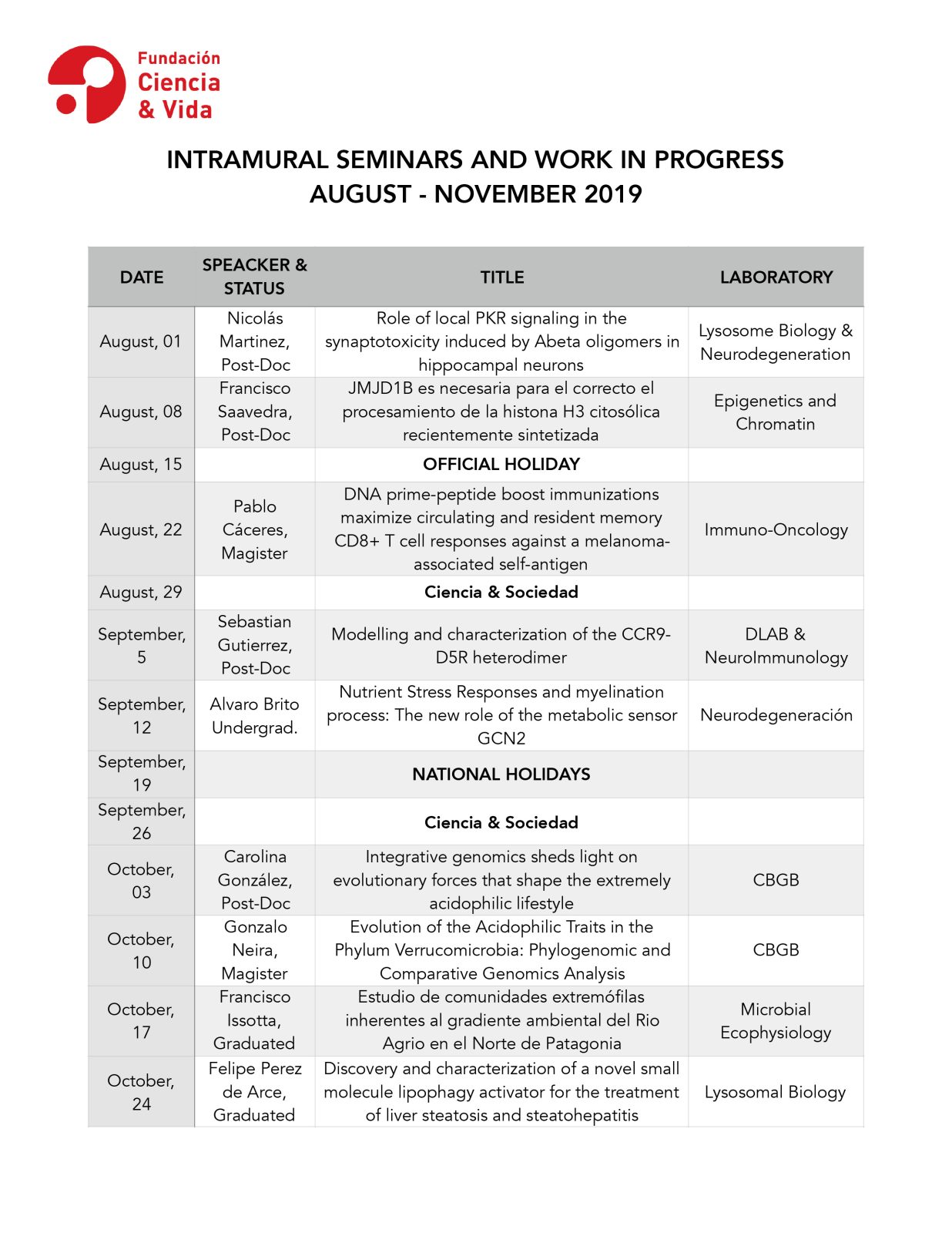 INTRAMURAL SEMINARS AND WORK IN PROGRESS AUGUST/NOVEMBER 2019