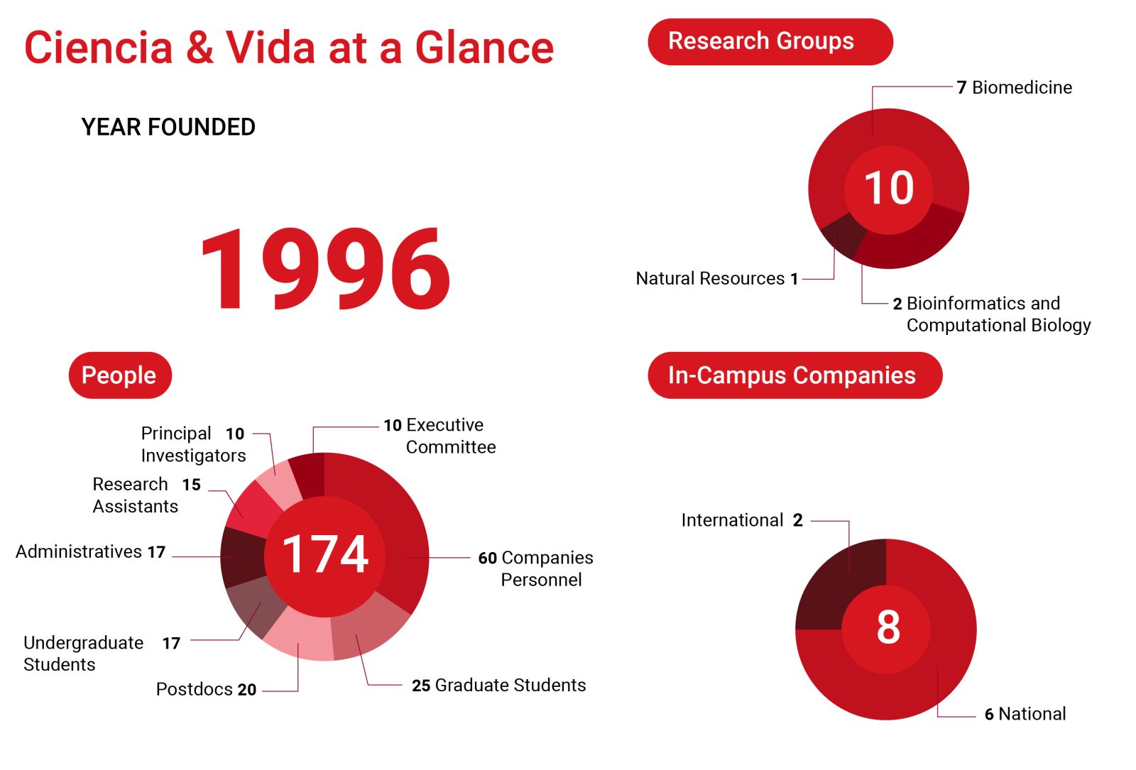 The BASAL Centro Ciencia & Vida (CCV) is founded on three previous periods of BASAL spanning more than 15 years; from 2008 to 2017 (PFB16), with a three-year extension from 2018 to 2020 (AFB170004), and the bridge project financing the years 2021-2022 (ACE 210003). The continuity plan approved for our Center (CCTE BASAL FB210008, 2021-2026) includes a group of 12 Principal Investigators, 8 from the FCV, and 4 from other national Universities, with 4 of them as new incorporations (33% renewal) and 13 Associated Researchers, mostly young (including 8 new members), providing a healthy renewal of our team and gender balance. Facing this new period, the Center appointed a new Director (Tomas Pérez-Acle), a new Deputy Director (Soledad Matus) and a Manager.