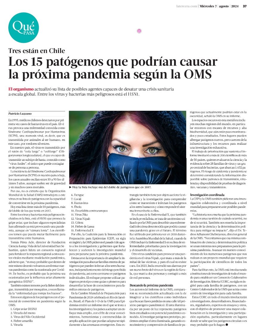 Dr. Tomás Pérez-Acle: “Es muy probable que dentro de este mismo decenio volvamos a enfrentar nuevas pandemias como la ocasionada por Covid-19. De hecho, es probable que la próxima sea ocasionadas por la influenza aviar altamente patogénica (H5N1)”