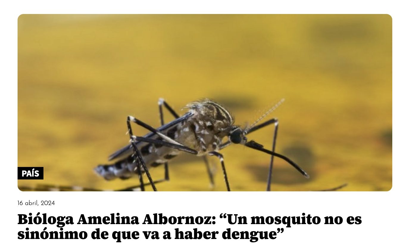 Bióloga Amelina Albornoz: “Un mosquito no es sinónimo de que va a haber dengue”