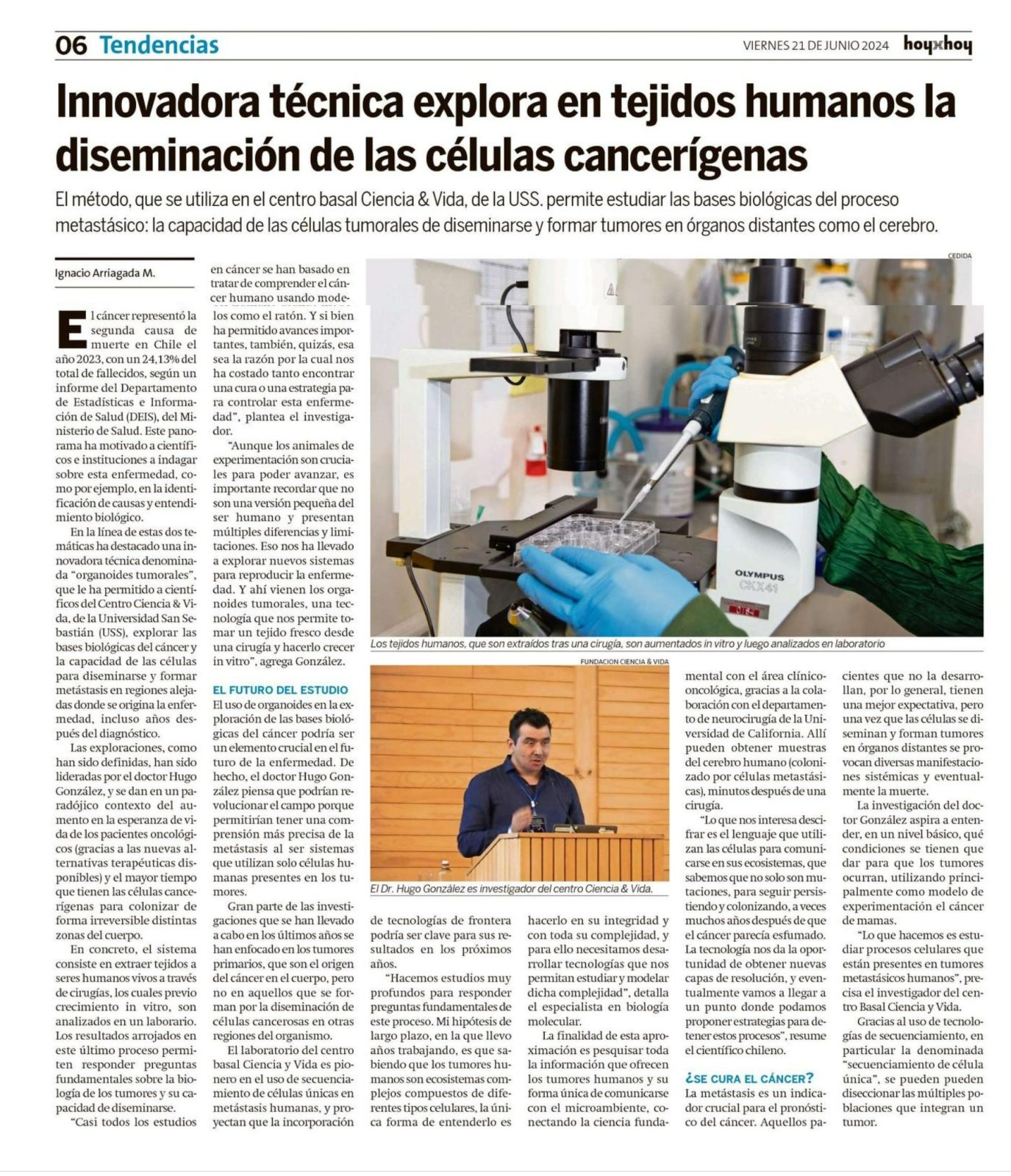 Dr. Hugo González: “Con los organoides tumorales se puede tomar una biopsia de un paciente, expandir y probar las drogas que pueden hacerle efecto al cáncer o al paciente y tratarlo”