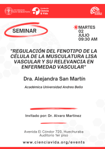 En esta oportunidad presentará la Dra. Alejandra San Martin, Académica de la Universidad Andres Bello. El titulo de su presentacion es: “Regulación del fenotipo de la célula de la musculatura lisa vascular y su relevancia en enfermedad vascular”.