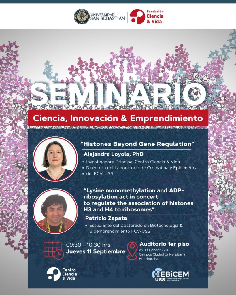 El Centro Ciencia & Vida tiene el agrado de invitarles al próximo Seminario CCV 2025, en el que se presentarán investigaciones sobre cromatina, epigenética y regulación molecular de las histonas.