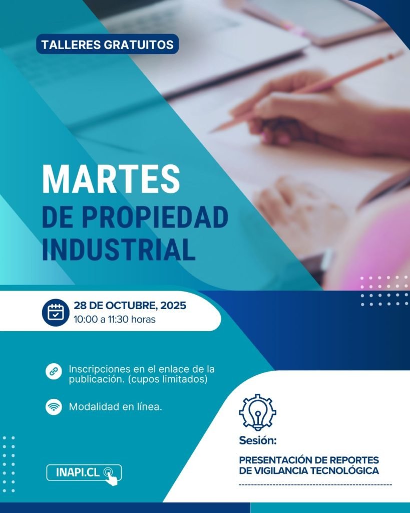 Este martes 28 de octubre te invitamos a participar en un nuevo taller gratuito sobre distintos aspectos de la Propiedad Industrial organizado por INAPI Chile.