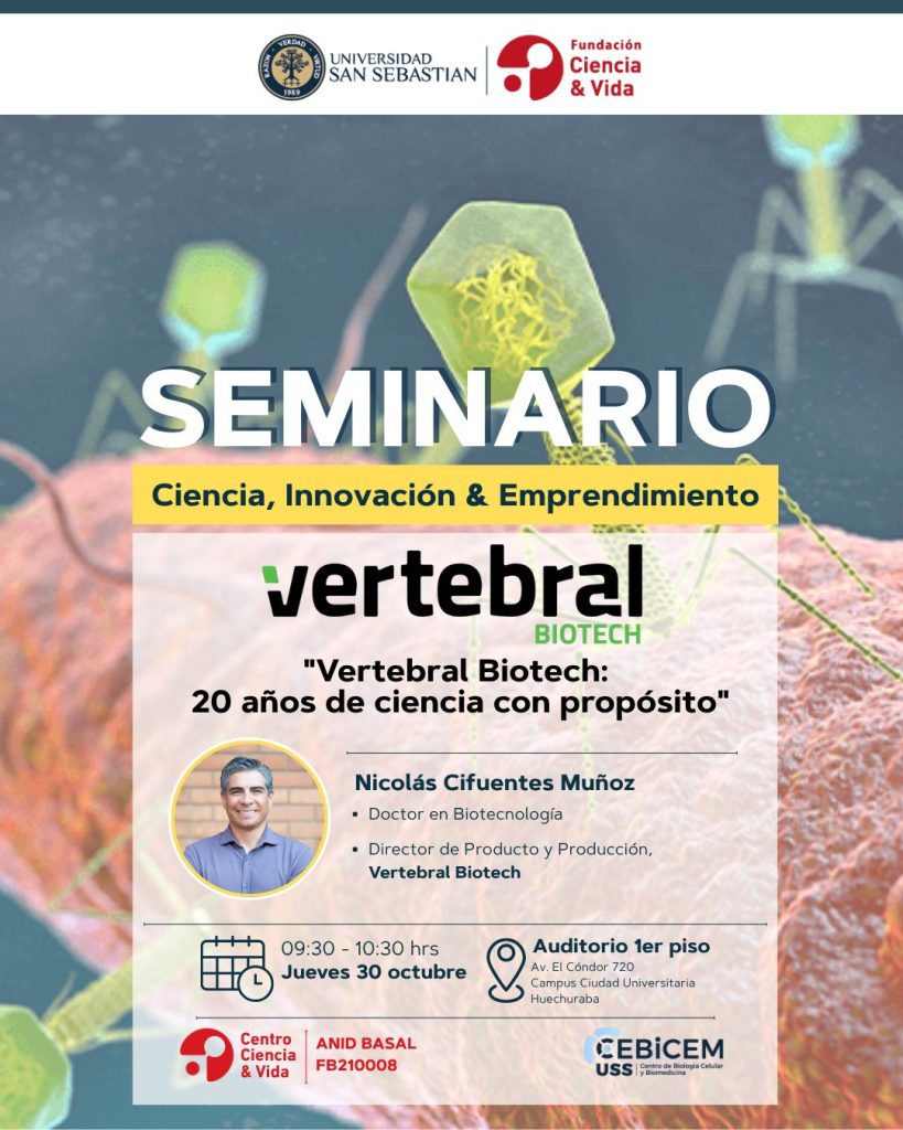 Centro Ciencia & Vida tiene el agrado de invitarle al próximo Seminario CCV 2025, que contará con la participación de Vertebral Biotech, empresa biotecnológica nacional dedicada al desarrollo de soluciones científicas con impacto en la salud y la rehabilitación de personas con secuelas de quemaduras.